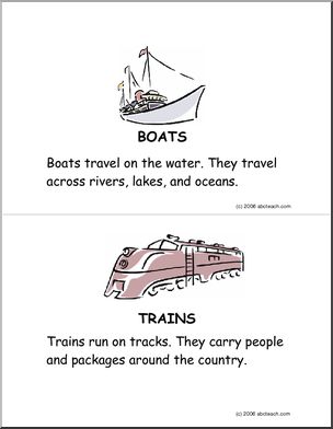 Eight different forms of transportation, 1/2 page each. Makes a great introductory booklet.
