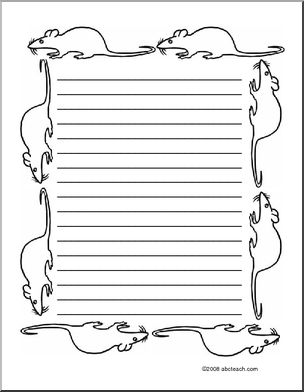 Lined and unlined paper with rats running around the border; this paper is great for the Chinese “Year of the Rat”.