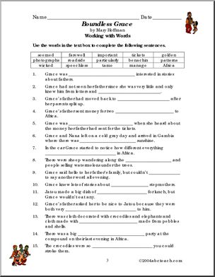 Use this ‘Book: Boundless Grace (primary/elem)’ printable worksheet in the classroom or at home. Your students will love this ‘Book: Boundless Grace (primary/elem)’. Vocabulary, comprehension and writing exercises enhance this book by Mary Hoffman about family and a girl who loves stories.