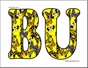 Bulletin board theme set ìButterflyî features 7 color graphics: 1 ladybug & 6 butterflies, a butterfly straight border, butterfly designed letters that spell BUTTERFLY, plus an a-z butterfly letter set.