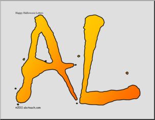 A set of color illustrated materials for a Halloween bulletin board, which include a straight border, letters spelling Happy Halloween, a set of 6 graphics of Halloween related images and a set of letters a-z.