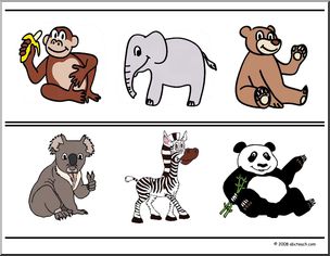 This bulletin board trim featuring animals (elephant, lemur, koala, tiger…) coordinates with our zoo animal calendar set.