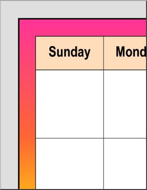Large grid with colorful border for use as a bulletin board size calendar. Use with other abcteach bulletin board size calendar components. Prints on 12 pieces of paper.