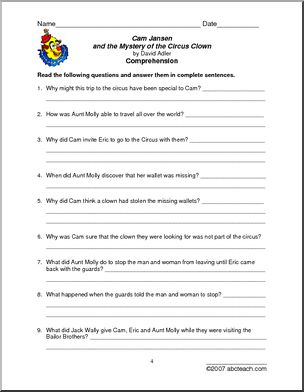 Use this ‘Book: Cam Jansen and the Mystery of the Circus Clown (upper elem)’ printable worksheet in the classroom or at home. Your students will love this ‘Book: Cam Jansen and the Mystery of the Circus Clown (upper elem)’. Cloze exercise, crossword, word search, short answer comprehension questions, and a report form to accompany David […]