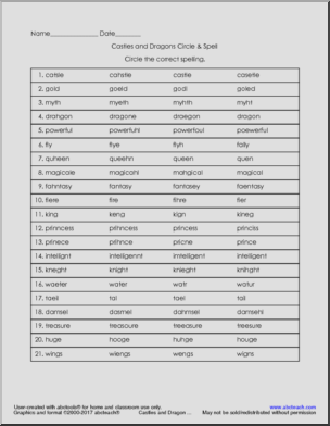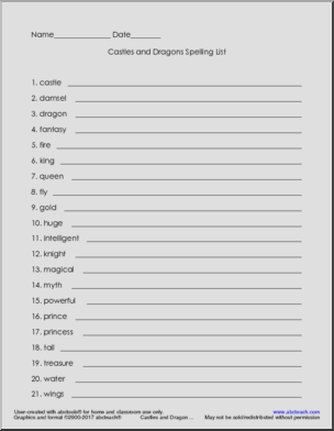 Castles & Dragons Spelling Fun Packet