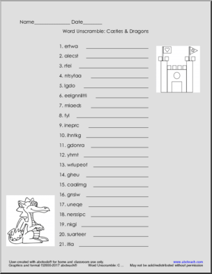 This fun packet focuses on spelling. The theme is castles and dragons. May be used in a learning center. Multi-age. Includes 13 pages of spelling activities such as Circle & Spell, Word Search, Word Unscramble, Word Wall, and more!