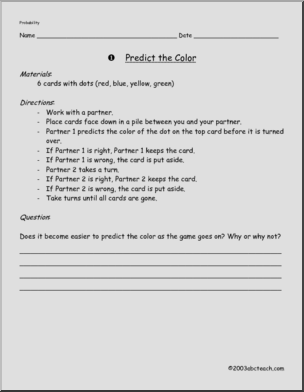 This Chance and Probability (elem, upper el, middle) Worksheet is perfect to practice probability skills. Your elementary grade students will love this Chance and Probability (elem, upper el, middle) Worksheet. Several activities to help students understand the differences between chance and probability. Common Core: Grade 6 Statistics and Probability: 6.SP.A.1, 6.SPA.2