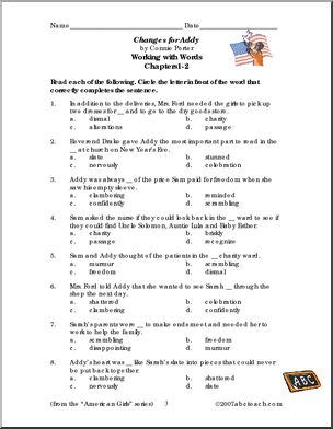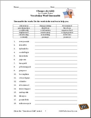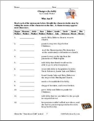 Use this ‘Book: Changes for Addy (elem/upper elem)’ printable worksheet in the classroom or at home. Your students will love this ‘Book: Changes for Addy (elem/upper elem)’. This book unit, based on a book from the popular “American Girls” series, features reading comprehension questions and writing prompts, as well as vocabulary building exercises such as […]
