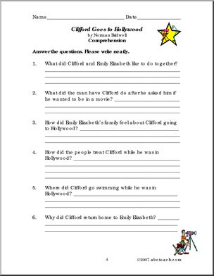 Use this ‘Book: Clifford Goes to Hollywood (primary)’ printable worksheet in the classroom or at home. Your students will love this ‘Book: Clifford Goes to Hollywood (primary)’. Clifford is going to be a star! Enhances vocabulary and comprehension of this book from Norman Bridwell’s popular “Clifford” series.