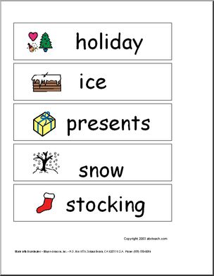 Use this ‘Word Wall: “Clifford’s Christmas” (primary/elem)’ printable worksheet in the classroom or at home. Your students will love this ‘Word Wall: “Clifford’s Christmas” (primary/elem)’. From “bowl” to “stocking”, these vocabulary building word strips with pictures are great for word walls, sentence strips, spelling and vocabulary practice. Enhances the book by Norman Bridwell.
