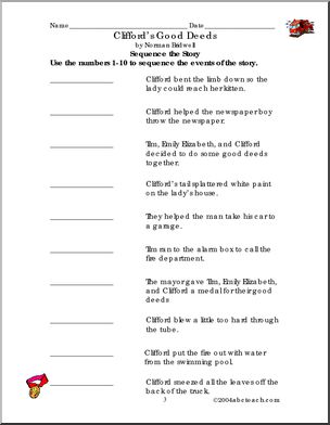 Use this ‘Book: Clifford’s Good Deeds (primary/elem)’ printable worksheet in the classroom or at home. Your students will love this ‘Book: Clifford’s Good Deeds (primary/elem)’. Enhances vocabulary and comprehension of this book from Norman Bridwell’s popular “Clifford” series.