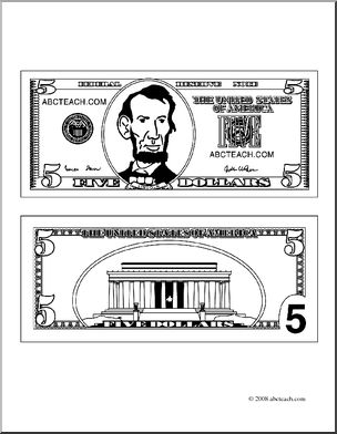 This Five Dollar Bill Outline (coloring page) clipart is great to illustrate your teaching materials. As an abcteach member you have unlimited access to our 22,000+ clipart illustrations and can use them for commercial use. This Five Dollar Bill Outline (coloring page) clipart is provided in jpeg format.