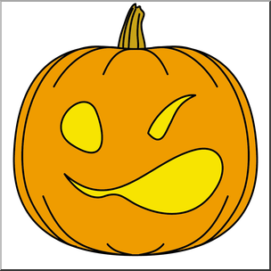 Happy Halloween word banner with pumpkin faces in color clip art is ready to re-size for decoration or bulletin boards. Fun seasonal illustration.