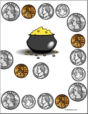 This Coins (30 spaces; color version) Game Board is perfect to practice money skills. Your elementary grade students will love this Coins (30 spaces; color version) Game Board. Folder game board with a coin theme. U.S. coins, shamrocks and a pot of gold. Play it for St. Patrick’s Day.
