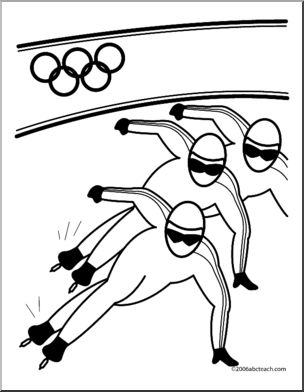 Speed skating coloring page in black and white. Combine with other winter Olympic event pages to create a book about the games.