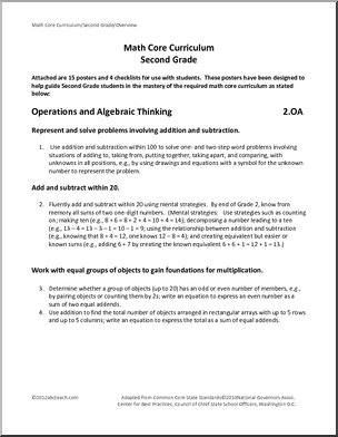 This packet contains an overview, for both parents and teachers, of the common core standards for second grade math. 15 student-friendly posters describe the standards in easy to understand terms. 4 student checklists, written in student friendly language, are included for students to track their mastery of each standard.