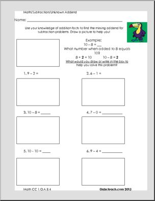 Common Core: Math: Subtraction – Unknown Addend (grade 1)