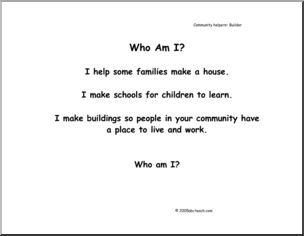Introduce the children to a community helper and the way that person helps the community. Sort a variety of pictures to match each occupation. (Use alone or with other Community Helpers in this series)