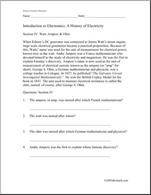 Comprehension: A History of Electricity (upper elem/ middle)