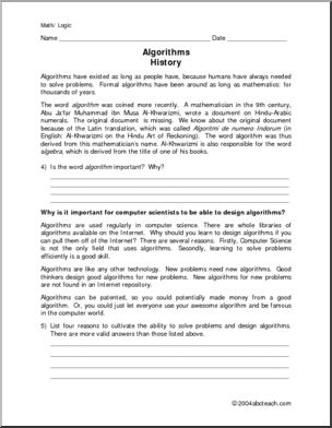 Including an introduction to the history of algorithms as well as their more common contemporary uses, this mini-unit features short, easy problems and a few longer ones to help students understand the importance of algorithms in problem-solving.
