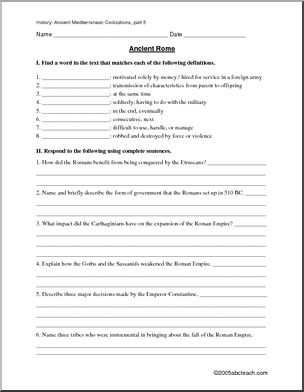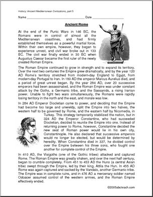This reading comprehension introduces the ancient Mediterranean culture of the Romans. Part 5 of a series.