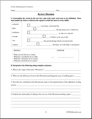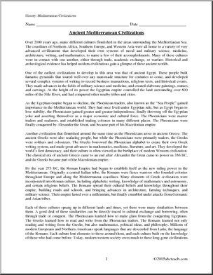 This set of five reading comprehensions introduces the ancient Mediterranean cultures of the Egyptians, Phonecians, Greeks, and Romans. This is the complete set, without any illustrations.