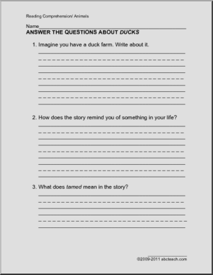 Brief, informative piece about ducks, followed by multiple choice comprehension questions.
