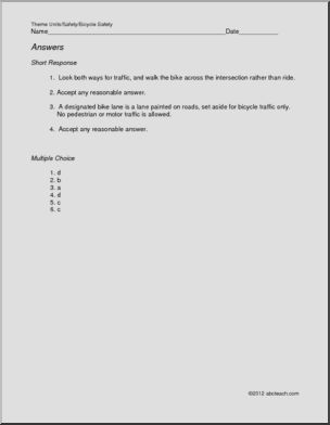 A one page guide to riding bicycles safely, with multiple choice and short answer question sets.