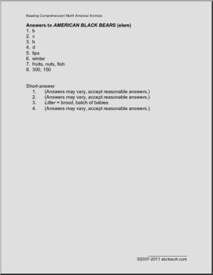 Simple factual information about American black bears, followed by comprehension questions.