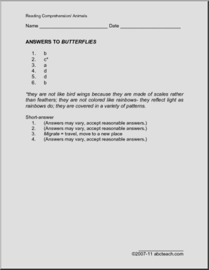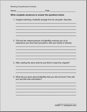 Comprehension: Butterflies (elementary)