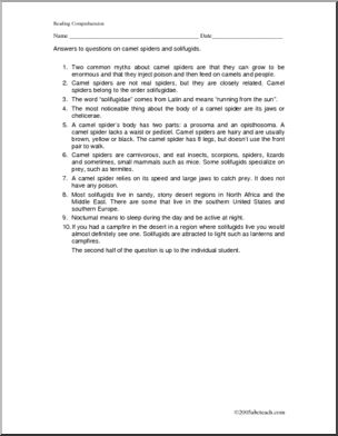 Comprehension: Camel Spiders (elem/upper elem)