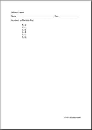 Explains the origins of this July 1st holiday; followed by multiple choice comprehension questions.
