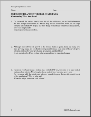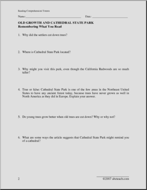 A factual reading comprehension about the trees in West Virginia’s ancient hemlock forest.