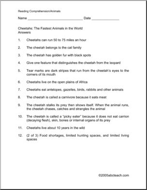 This cat is the fastest animal in the world! Learn more with this two page reading comprehension.