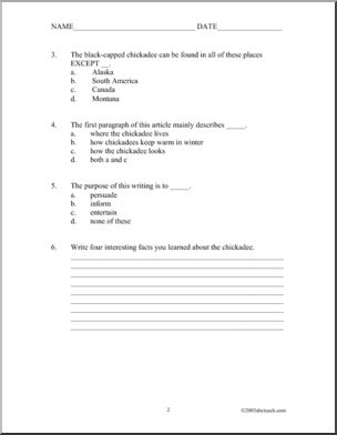 Interested in chickadees? Learn more about them with this fact-filled reading comprehension.