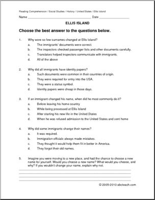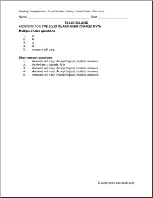 Comprehension: Ellis Island 6; The Name Change Myth (upper el/middle)