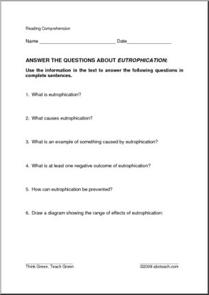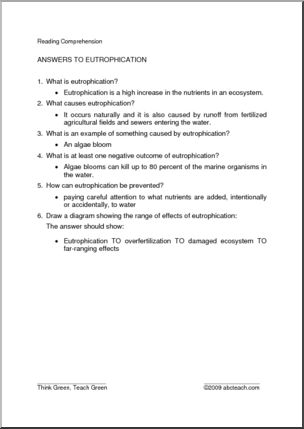 Read the facts, and then answer the questions: What is eutrophication? What causes it? Why is it bad? How can it be prevented?