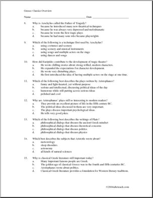 Comprehension: Greek Literature and Philosophy (upper elem/middle)