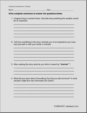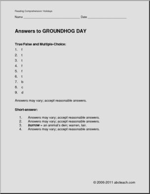 Comprehension: Holiday – Groundhog Day (elem/upper elem)