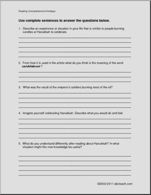 Comprehension: Holidays – Hanukkah (elem/upper elem)