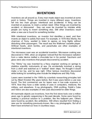 Comprehension: Inventions (upper elem)