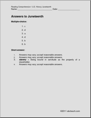 Comprehension: Juneteenth (elem)