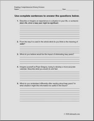 Comprehension: Leap Year (middle/high school)