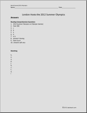 Comprehension: London Hosts the 2012 Summer Olympic Games (elem)