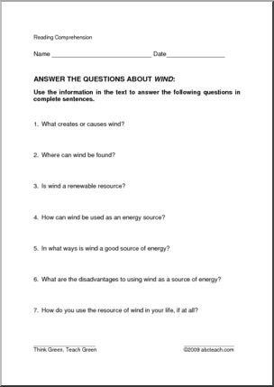 Comprehension: Natural Resources – Wind (upper elem/middle)