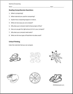 A one page comp on the health value of composting with comps questions, matching, and word search puzzle.