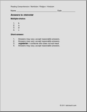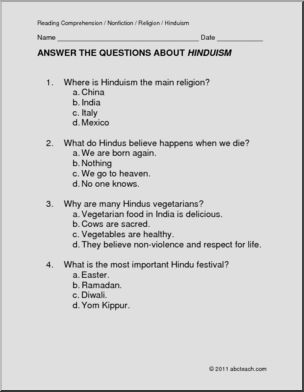 Comprehension: Religions of India; Hinduism (primary/elem)