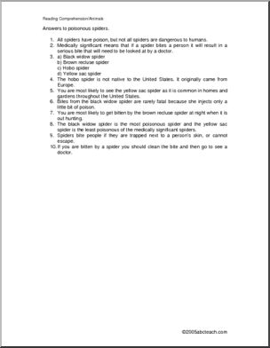 Comprehension: Spiders – Poisonous (upper elementary)