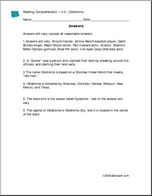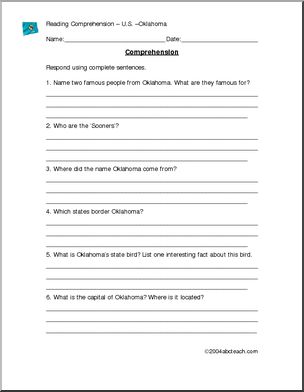Reading comprehension lesson based on Oklahoma.