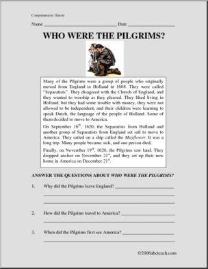 Comprehension: Thanksgiving and the Pilgrims (upper elem/middle)